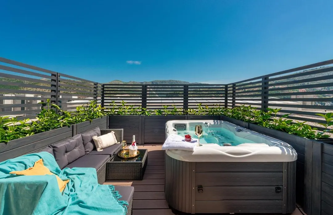 An equipped kitchen is featured with a microwave, a fridge, and kitchenware, as well as tea and coffee making equipment, ensuring a better dining experience. Dubrovnik airport is at a 27-minute driving distance, and Rijecka bus stop is on the doorstep of the 40 m^2 apartment. The use of a Jacuzzi can contribute to a more enjoyable stay.